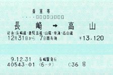 長崎 → 高山 経由:長崎線・鹿児島線・ 長崎駅 発行 |