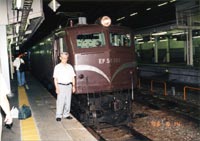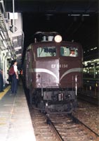 5番線に到着。7番線より発車。 牽引機関車 EF58−160(茶) であった。 |