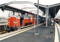8番線に到着・発車。列車番号が変わる。 牽引機関車 DD51−1105 に変わる。 |