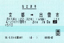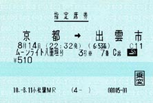 | 指定席券 快速 ムーンライト八重垣 C席/D席 |