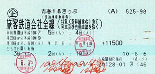 | 距離(青春18きっぷ使用) | 1,182.9 km | 100.0 % |