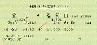 「急行 だいせん」の快速区間。 4号車 6番 B席 |